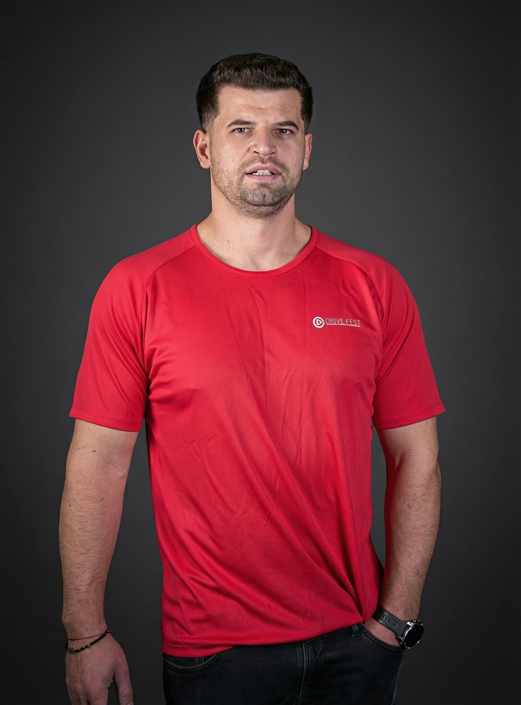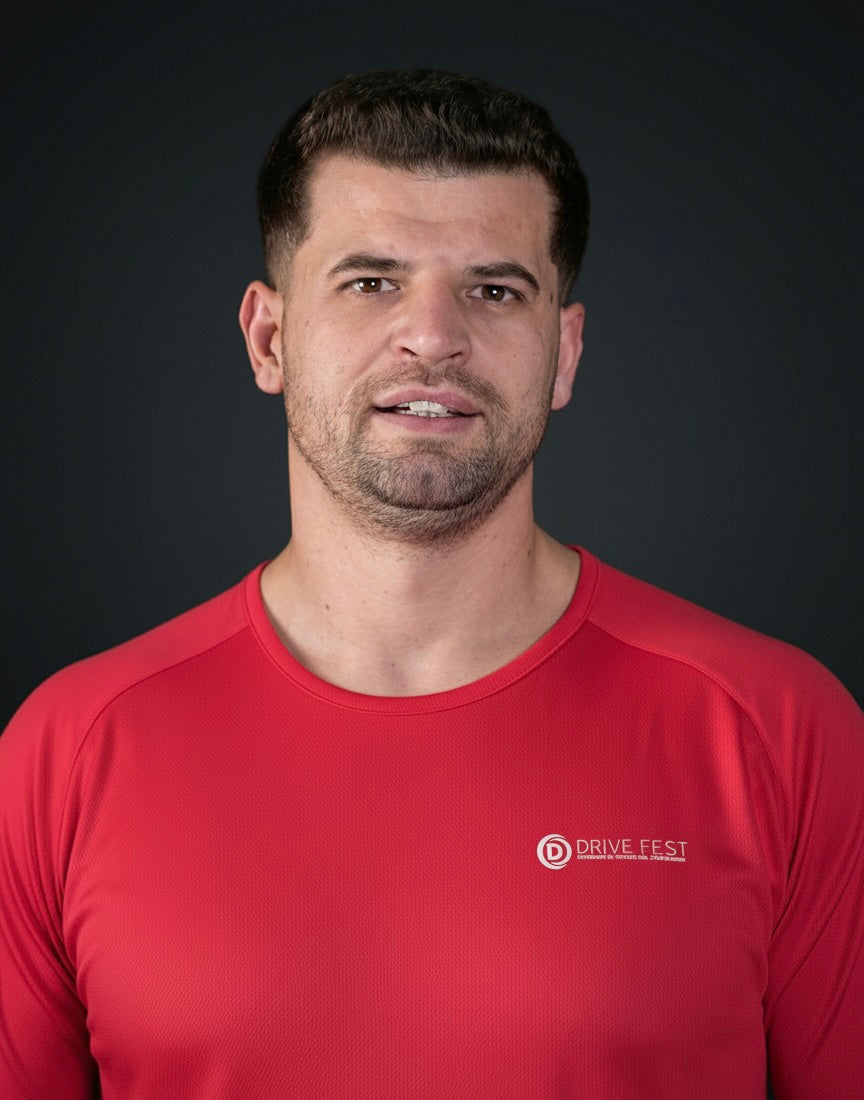 - Logotipo estampado de Drivefest en el pecho y Rutas de Éxito en la parte trasera.